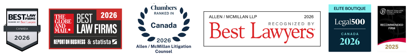 Since opening its doors in 2018, Allen / McMillan has received recognition as a leading litigation firm in both British Columbia and Canada.